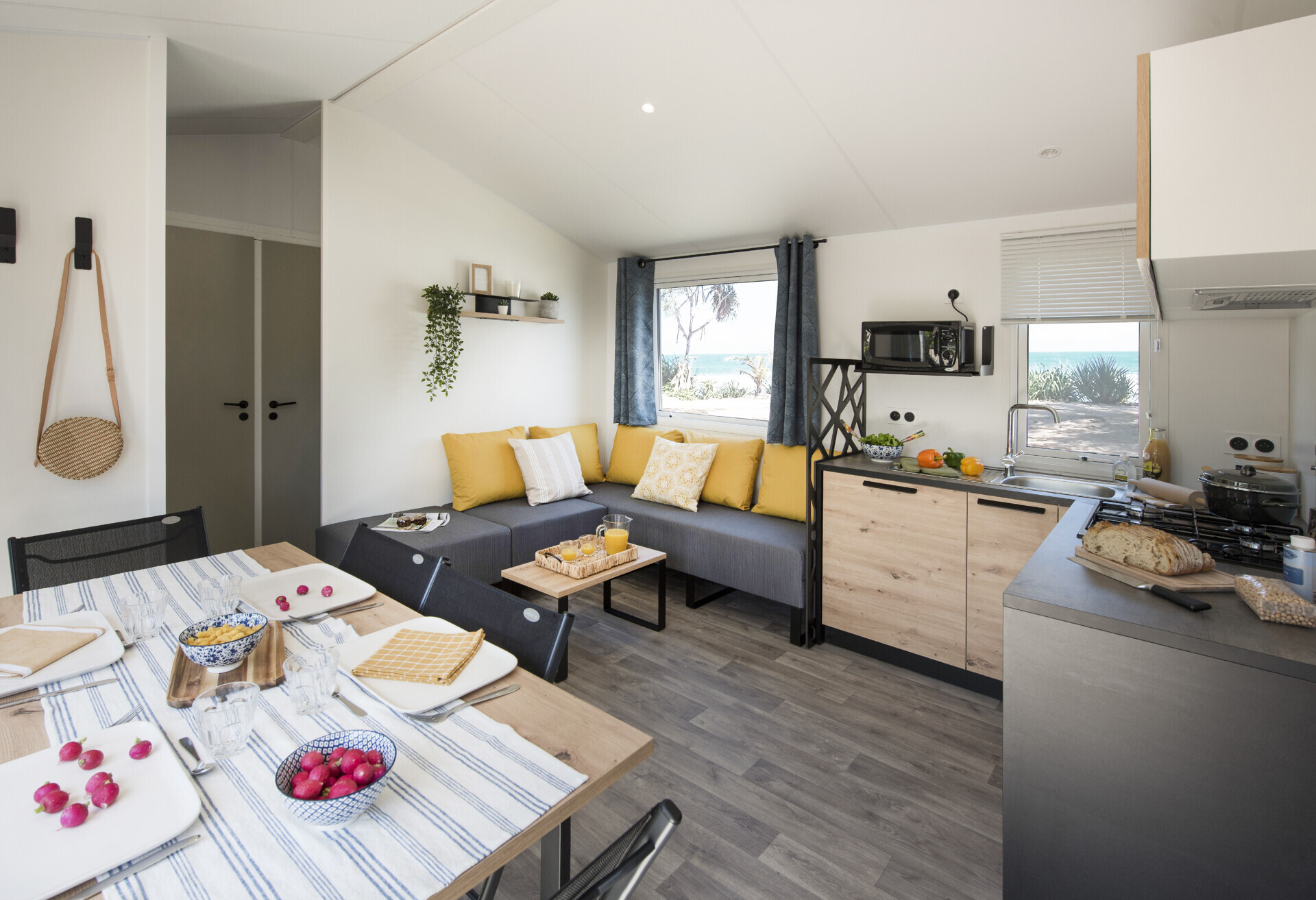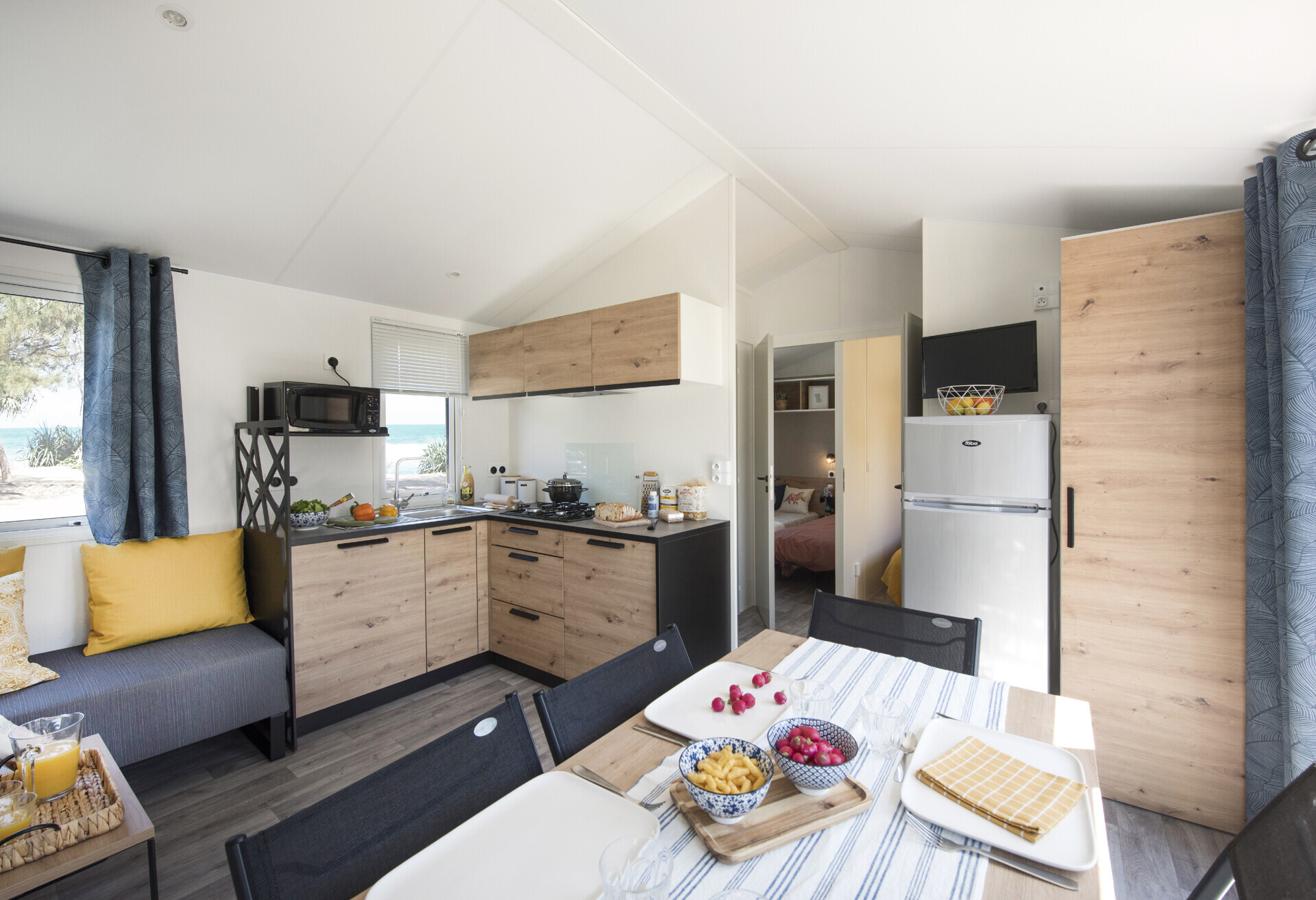 Cooktop, fridge/freezer, crockery, microwave, traditional oven, espresso coffee maker, toaster and dishwasher.